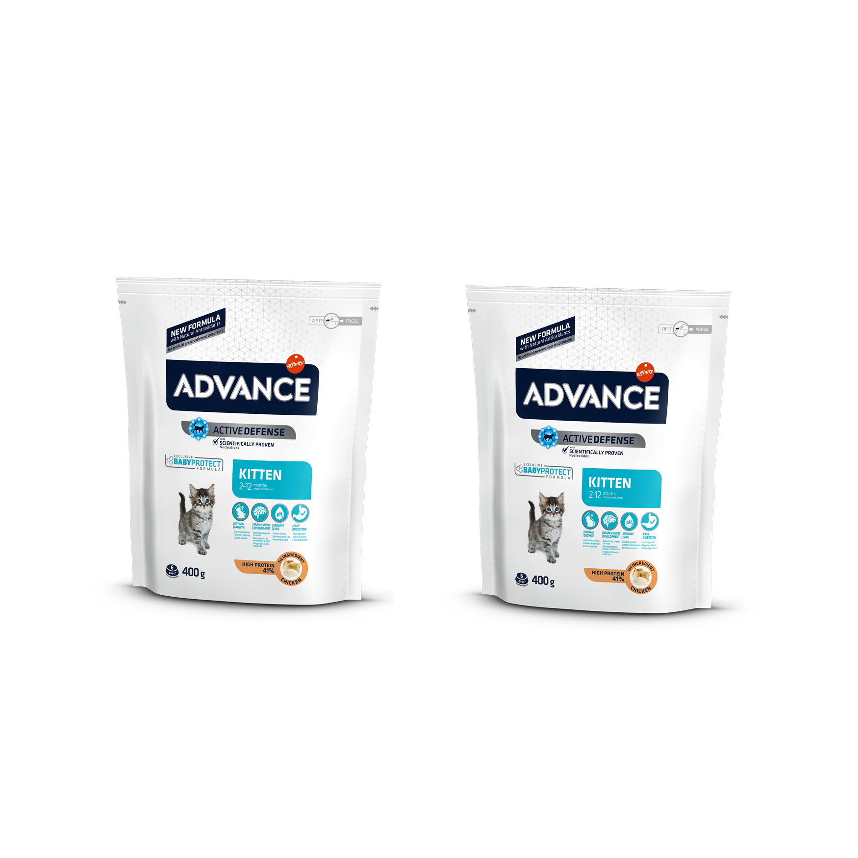Optimeeritud kaltsiumi ja fosfori tase tagab kassipoja optimaalse kasvu ja luustiku arengu. ADVANCE Kitten toidus on ka Omega 3 ja Omega 6 rasvhappeid. Kana ja riisiga. SOOVITATAV Kõikide kassipoegade (vanuses 2 kuni 12 kuud), tiinete või imetavate kasside jaoks.