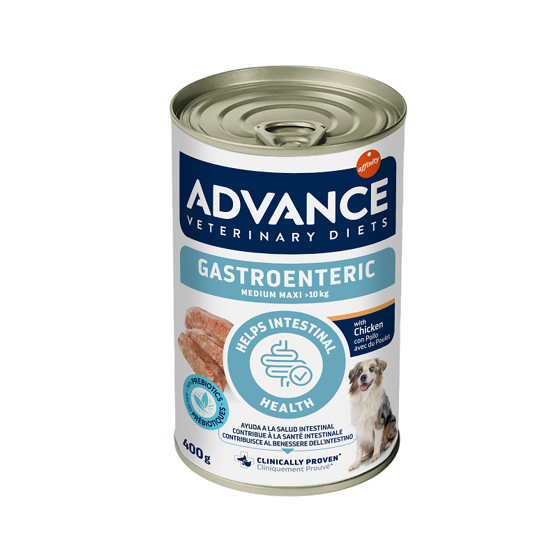 | ADVANCE VETERINARY DIET DOG Gastroenteric Med/Maxi 400g - täisväärtuslik märg dieettoit, mis on spetsiaalselt välja töötatud keskmise ja suure kasvuga täiskasvanud
